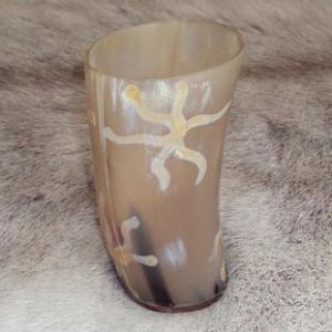 Ceremonial Brass Top Drinking Horn With Iron Stand