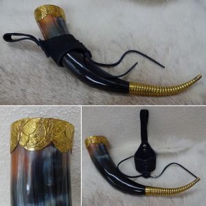 Medieval / Viking, Brass Wolf Pattern Belt in Red Leather